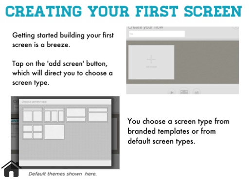 Getting started building your first screen is a breeze. Tap on the 'add screen' button, which will direct you to choose a screen type.