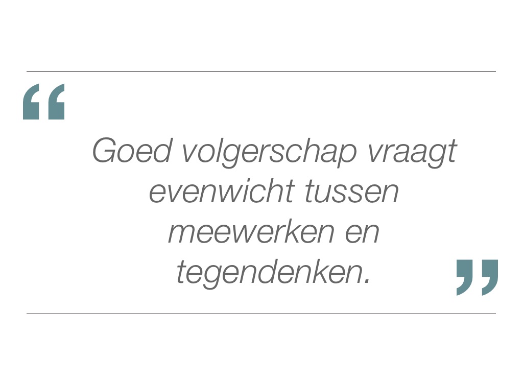 Goed volgerschap vraagt evenwicht tussen meewerken en tegendenken.