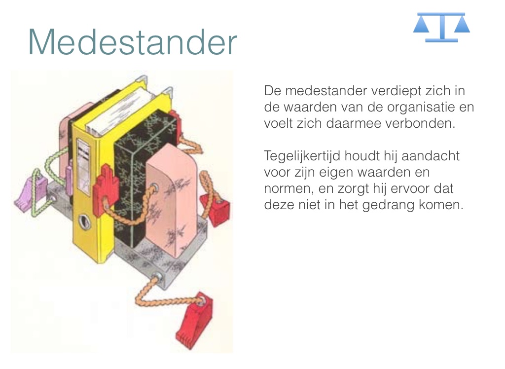 De medestander verdiept zich in de waarden van de organisatie en voelt zich daarmee verbonden.