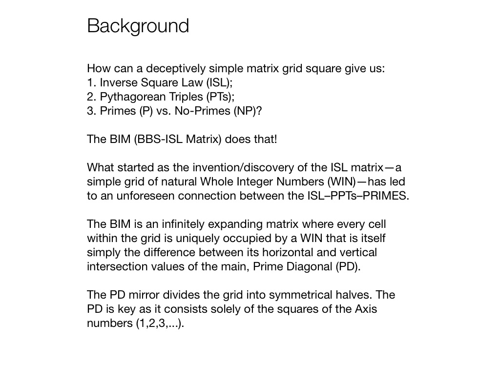 What started as the invention/discovery of the ISL matrix—a simple grid of natural Whole Integer Numbers (WIN)—has led to an unforeseen connection between the ISL–PPTs–PRIMES.