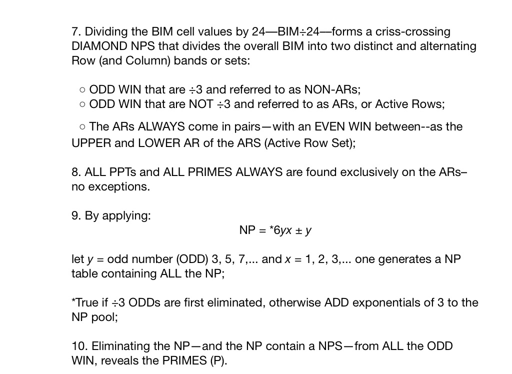 7. Dividing the BIM cell values by 24––BIM÷24––forms a criss-crossing DIAMOND NPS that divides the overall BIM into two distinct and alternating Row (and Column) bands or sets:
