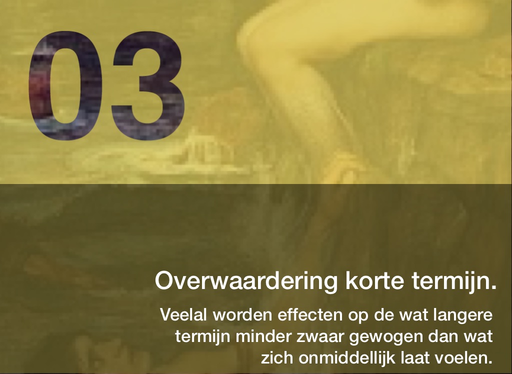 Veelal worden effecten op de wat langere termijn minder zwaar gewogen dan wat zich onmiddellijk laat voelen.