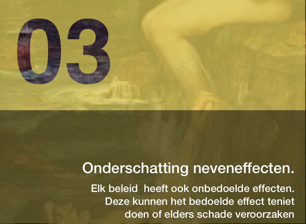 Elk beleid heeft ook onbedoelde effecten. Deze kunnen het bedoelde effect teniet doen of elders schade veroorzaken