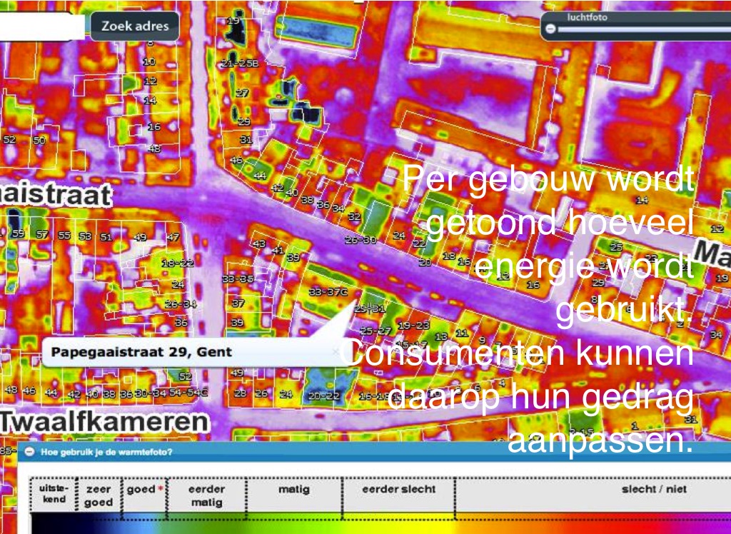 Per gebouw wordt getoond hoeveel energie wordt gebruikt. Consumenten kunnen daarop hun gedrag aanpassen.