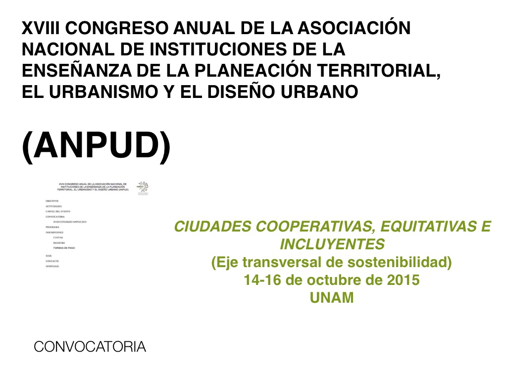 Convocatoria XVIII Congreso de la ANPUD, Octubre 2015, UNAM, Ciudad Universitaria, Ciudad de México