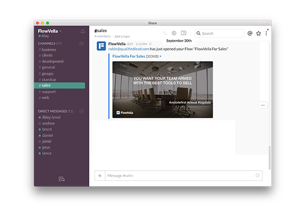 You'll know instantly via Slack when your Flow is viewed*. No more guessing about when the perfect time to follow up with your prospect is!