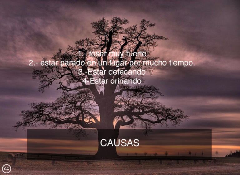 1.- toser muy fuerte 2.- estar parado en un lugar por mucho tiempo. 3.-Estar defecando 4-Estar orinando
