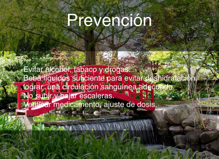 Evitar alcohol, tabaco y drogas. Beba líquidos suficiente para evitar deshidratación. lograr una circulación sanguínea adecuada. No subir y bajar escaleras. Verificar medicamento, ajuste de dosis.