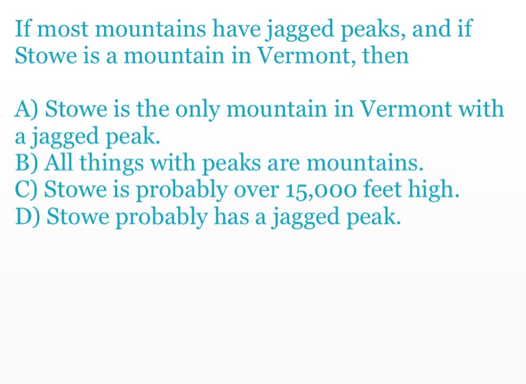 If most mountains have jagged peaks, and if Stowe is a mountain in Vermont, then