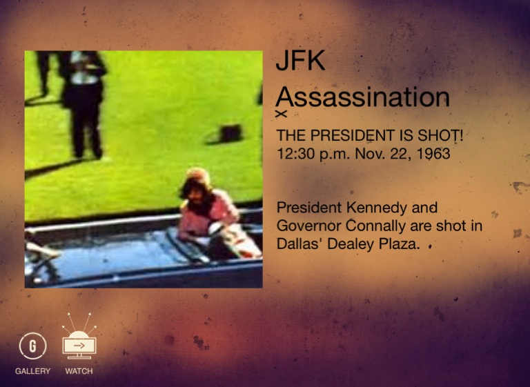 THE PRESIDENT IS SHOT! 12:30 p.m. Nov. 22, 1963 President Kennedy and Governor Connally are shot in Dallas' Dealey Plaza.