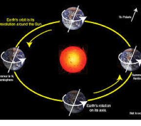 The earths rotation refers to the spinning of our planet spinning on its axis. The rotation causes to move at the equator at a speed about 467m per second. If you look at the North Pole from space you would notice the direction of the rotation is counter clockwise. The opposite is true about the South Pole.