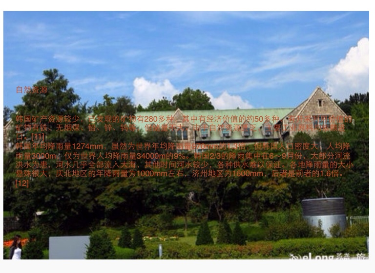 韩国年均降雨量1274mm,虽然为世界年均降雨量970mm的1.3倍,但韩国人口密度大,人均降雨量3000m,仅为世界人均降雨量34000m的9%。韩国2/3的降雨集中在6~9月份,大部分河流洪水为患,河水几乎全部流入大海,其他时间河水较少,各种供水难以保证。各地降雨量的大小悬殊很大,庆北地区的年降雨量为1000mm左右,济州地区为1600mm,后者是前者的1.6倍。[12]