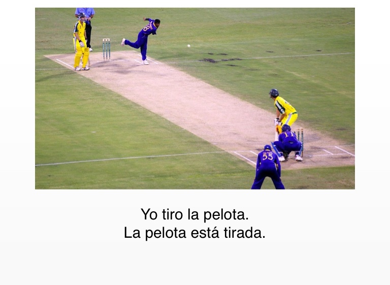 Yo tiro la pelota. La pelota está tirada.