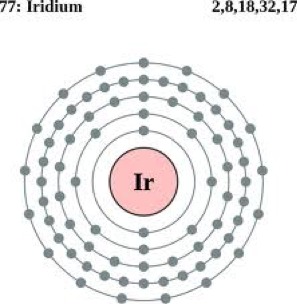 Each atom has 77 electrons, 77 protons, and 115 neutrons. The electrons are arranged like this.