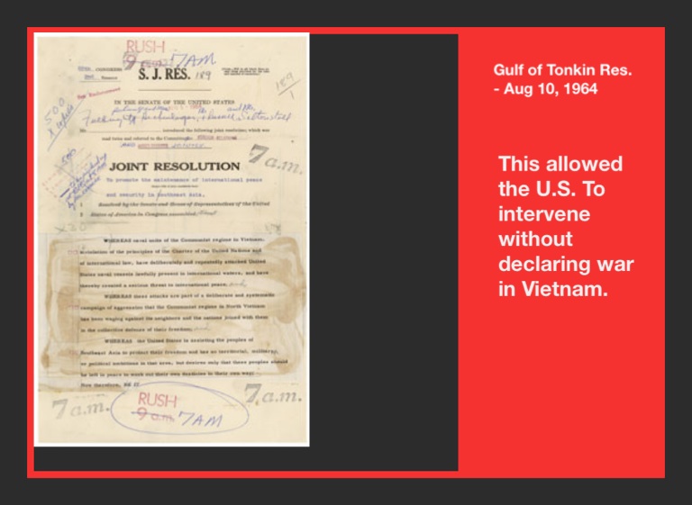 This allowed the U.S. To intervene without declaring war in Vietnam.