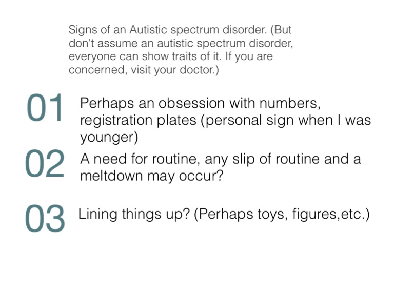Signs of an Autistic spectrum disorder. (But don't assume an autistic spectrum disorder, everyone can show traits of it. If you are concerned, visit your doctor.)