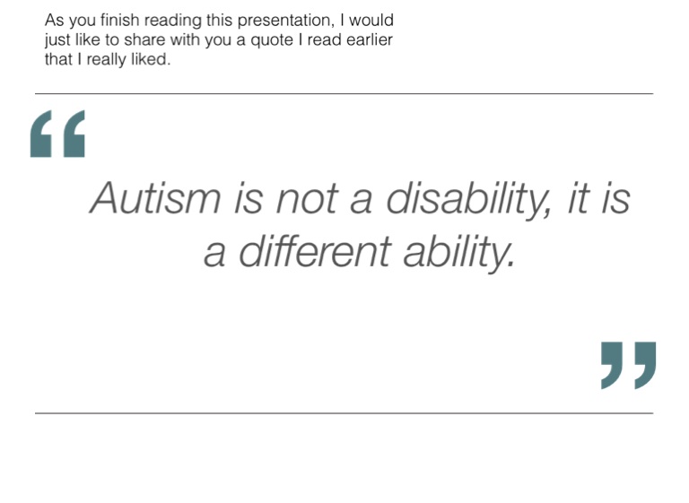 Autism is not a disability, it is a different ability.