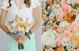 Mint and sea foam foliage will compliment bright red, coral and peach toned flowers. While elements of crystal and gold will offer a beautiful contrast to the soft flowers. Over all we want the design to feel fresh and fun.