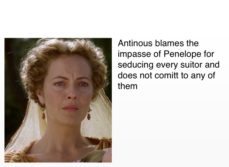 Antinous blames the impasse of Penelope for seducing every suitor and does not comitt to any of them
