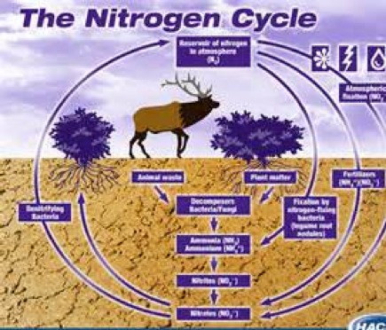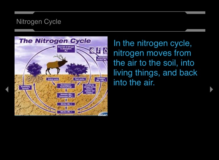 In the nitrogen cycle, nitrogen moves from the air to the soil, into living things, and back into the air.