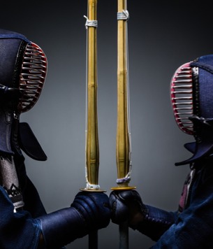 style fencing, which originated from kenjutsu, the most important martial art of the samurai. In the match, the competitor wears special protective gear and strikes at the opponent’s head, chest or hand with a bamboo sword.