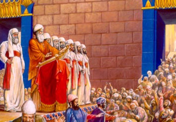 While Ezra prayed and made confession, weeping and casting himself down before the house of God, a very great assembly of men, women, and children, gathered to him out of Israel, for the people wept bitterly. And Shecaniah the son of Jehiel, of the sons of Elam, addressed Ezra: "we have broken faith with out a God and have married foreign women from the people's of the land, but even now there is hope for Israel in spite of this. Therefore let us make a covenant with our God to put away all of these wives and their children, according to the counsel of my lord and of these who tremble at the commandment of out God, and let it be done according to the Law. Arise for it is your task and we were are with you; be strong and do it." Then Ezra rose and made the leading priests and Levites and all Israel take oath that they would do as had been said. So they took the oath."