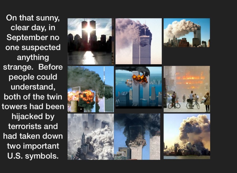 On that sunny, clear day, in September no one suspected anything strange. Before people could understand, both of the twin towers had been hijacked by terrorists and had taken down two important U.S. symbols.