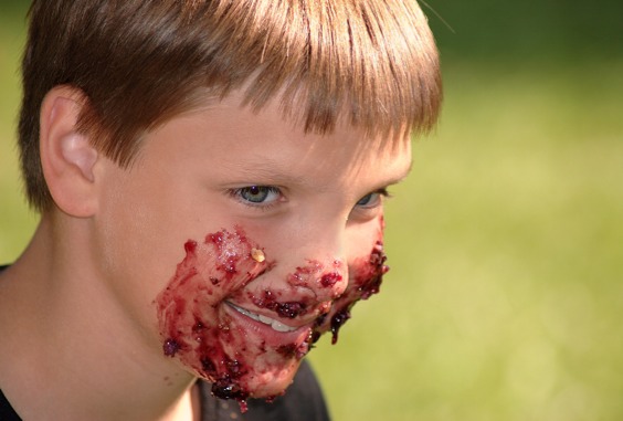 I have now gone into this red cave (mouth) where I see more sharp things except this time they are white and boulder like (teeth)and they're trying to crush me.(mechanical digestion) (Mastication) There is this gooey liquid that kind of burns me. (Salivary Glands) (chemical digestion)I now being made into this ball like thing. (Bolus) But now this gigantic red table pushes me backwards.