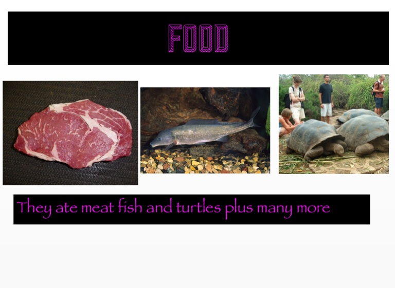 They ate meat fish and turtles plus many more
