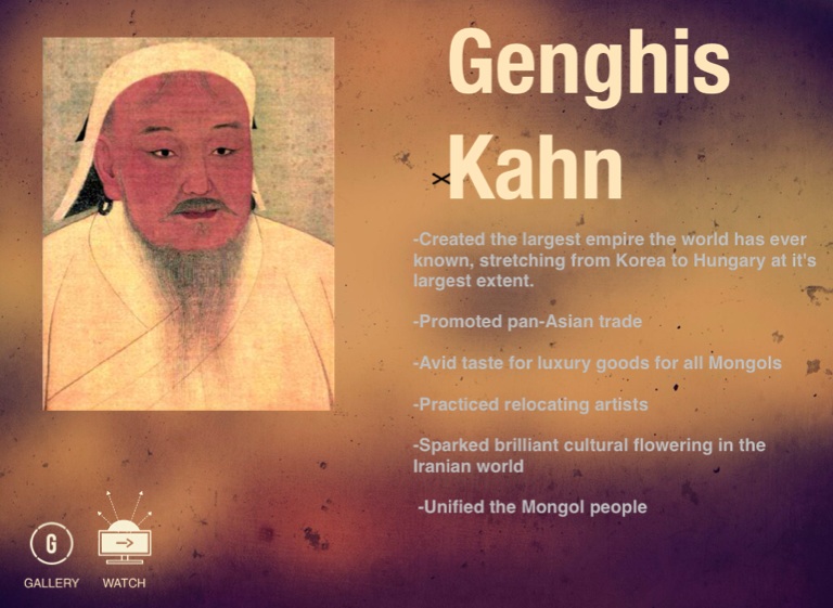 -Created the largest empire the world has ever known, stretching from Korea to Hungary at it's largest extent.