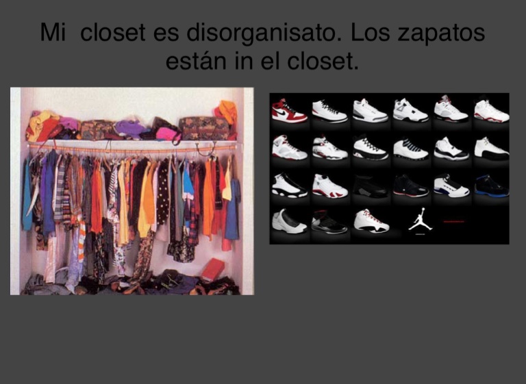 Mi closet es disorganisato. Los zapatos están in el closet.