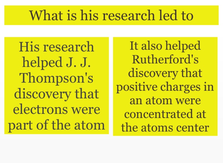 His research helped J. J. Thompson's discovery that electrons were part of the atom