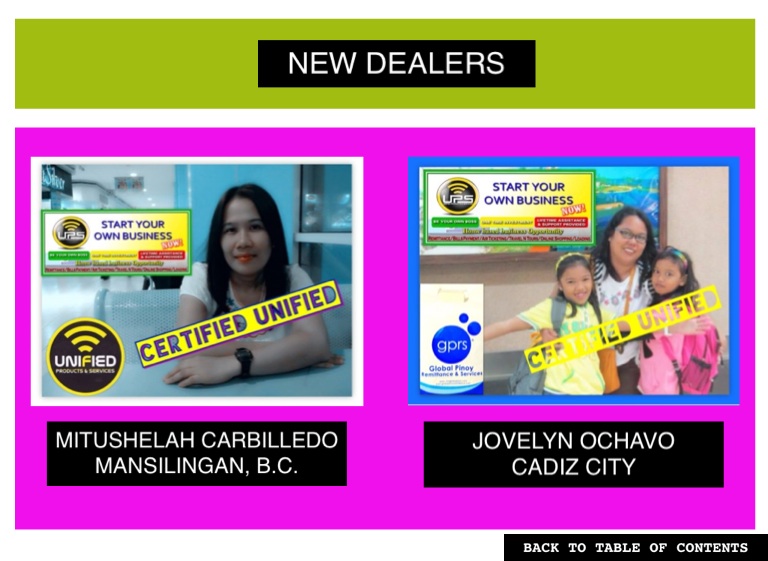 Best Franchise Business for 2019 Unified Products & Services is offering a ready-to-operate system that allows you to do the following businesses: 1. Remittance The connection of the Unified system with the Corporate Partners allows various options for you to send money depends on your client needs. a. Outlet to Outlet transfers b. Cebuana Outlets Nationwide c. Smart Money Padala Outlets Nationwide d. Credit to banks (61 Banks) e.Western Union f. Cardless Padala at any Security Bank ATM Machine And can process international remittance a. I-remit, b. Transfast c. Money gram d. ABS - CBN MyRemit e. New York Bay And ecash top up with a. RD Pawnshops nationwide b. Kwartagram outlets nationwide c. Triple Platinum Pawnshops d. Davaoena Pawnshops e. Dominion Pawnshops f. Maria Gracia Pawnshops g. Dalton Pawnshops h. St. Patrick Pawnshops i. Global Pinoy Remittance Outlets j. Esquisite Pawnshops and even cooperatives. 2. Bills Payment Payments for a range of billing partners, through its partnership with Unified, provide additional payment venues to clients/subscribers of water utilities, power companies, insurance providers, credit cards, telecommunication bills, schools tuitions, foundations and even cable companies. (100+ Billers including SSS, PLDT, Meralco, SMART, SUN, GLOBE, INNOVE and more!!! 3. Loading This allows real-time top-up of electronic wallets to support online games, Internet providers and major telecommunications in the Philippines -GLOBE, SMART and SUN and even international Telcos like Etisalat, Singtel, M1, Star Hub. 4.Ticketing/Travel and Tours/Hotel Booking (Domestic and International) This service integrates major domestic and international airline and shipping companies, even hotel accommodations, to allow travelers ease in schedule selection, booking, purchasing and securing tickets and direct booking with over 400 Airlines affiliates. 5. Insurance This service provides personal accident insurance to community members. Each insured is entitle to receive a specific amount for the death/or Disablement as a result of a covered accident. For Franchising,pls contact sir Joener Sison 09369896861/09460905401 For more franchise info, visit us @upsunifiedproductsservicesbacolod.weebly.com