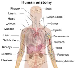 Ahhhh! Nothing like sitting in a boiling pot of water in the bayou. Suddenly the silence was ruined by a giant pair of sticks grabbing me out of the water. (fingers) Then I was shoved into a dark cave that closed up. (mouth) I started to get chomped up by huge white boulders, crushing me from every side. (teeth) Then water started rushing in to the cave from the ceiling an the ground. (salivary glands) Then a huge slimy monster picked me up and pushed me through a hole. (tongue) Then I got squeezed into a tube that was pushing down into the darkness. (esophagus, peristalsis) Then I was dropped into another cave, but this one was a lot bigger. (stomach) Ouch! All of a sudden I splashed into a burning pool of water. (gastric juices, chemical digestion) The everything got still and the cave started to rumble I was being sloshed around like mouthwash. (churning, mechanical digestion) Then I was squirted out of the water filled cave, and pushed into another tube! (small intestines) Then I thought I was safe but all of a sudden a bunch of liquid squirted into the tube. (bile, gall bladder, pancreas, liver) As I was getting pushed further down in the tube there these finger like projections lining the tube. (villi) Them I came to the end of the tube, and I was pushed into an even bigger one. (large intestines) Finally, I was done being pushed around in a bunch of tubes, and I came to what seemed to be a storage tank. (rectum) Then the walls started to rumble and I was getting pushed down further and further into the storage tank. Then I started to get joined with other foods and we were all clumped up in one ball. (feces) Then I finally got squeezed out of the last hole and landed in the swimming pool. (anus, toilet)