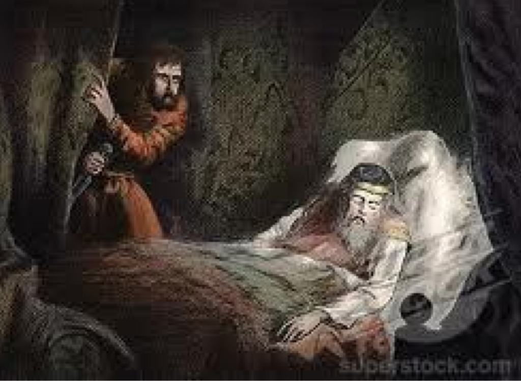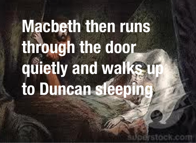 Macbeth then runs through the door quietly and walks up to Duncan sleeping