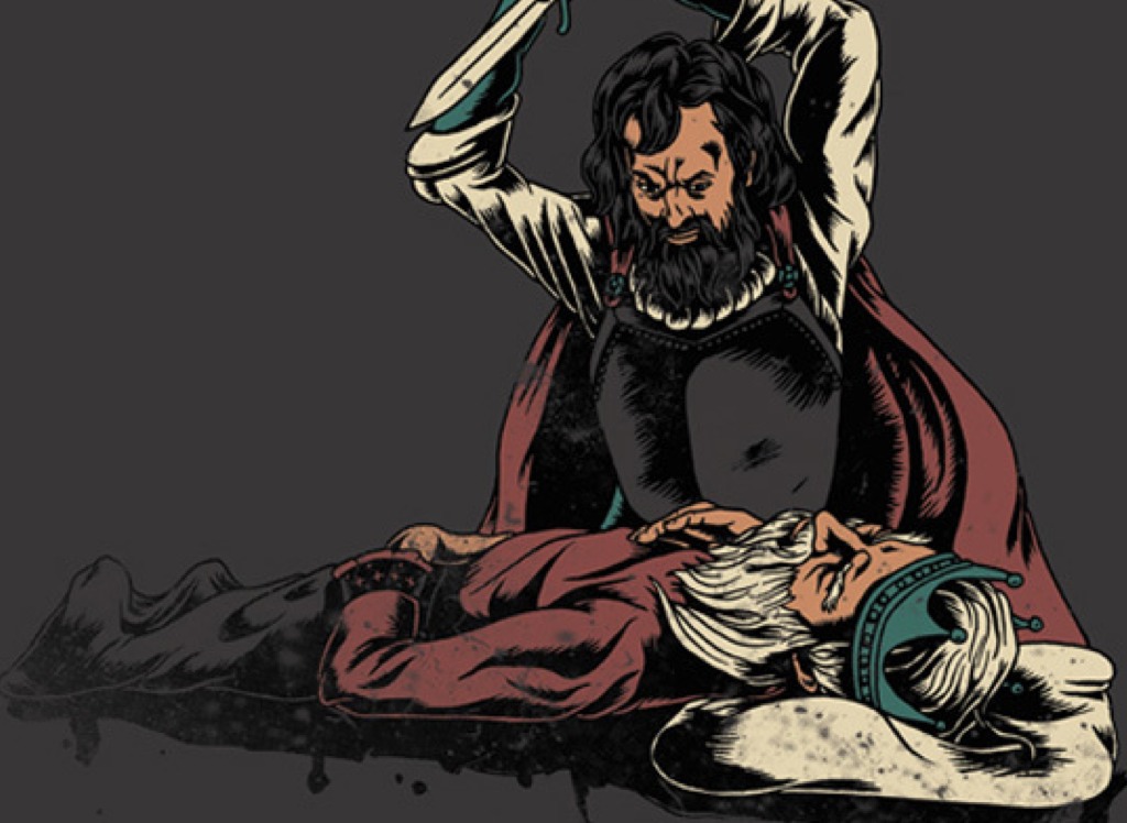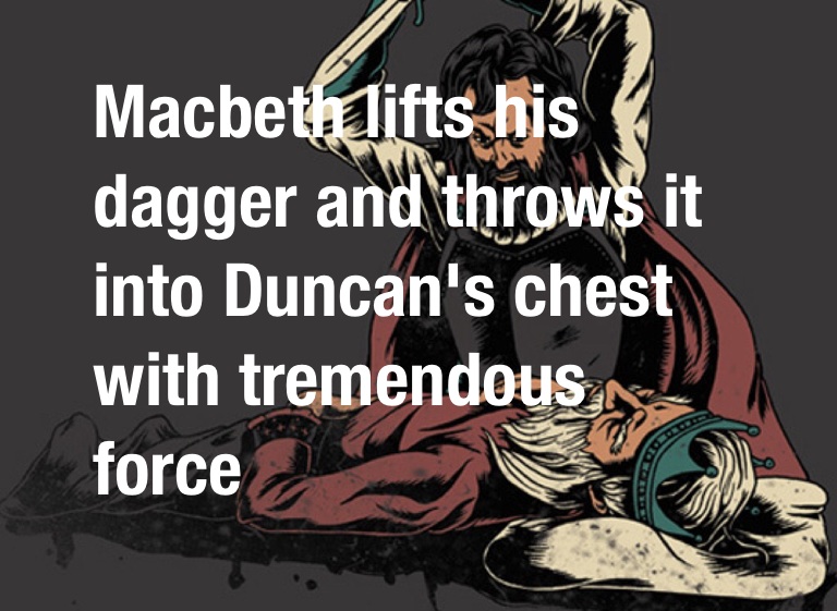 Macbeth lifts his dagger and throws it into Duncan's chest with tremendous force