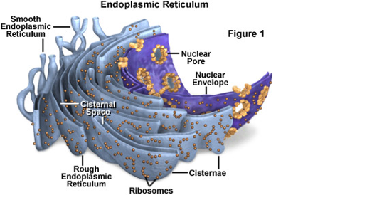 Extensive system of tubes and membranes with cisternae. The rough ER is the site of protein synthesis while thy smooth ER is the site of lipid metabolism, detoxification of drugs, and hormone synthesis.