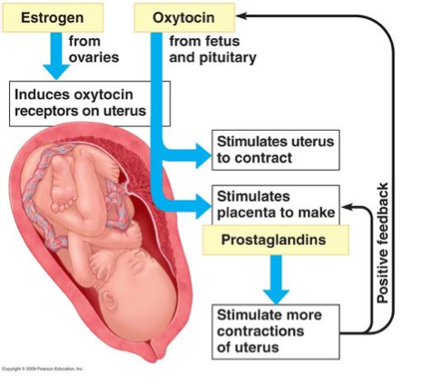 Ex.) the enhancement of labor contractions during birth. The hormone, oxytocin, causes the contractions to become more and more frequent