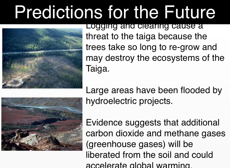 Logging and clearing cause a threat to the taiga because the trees take so long to re-grow and may destroy the ecosystems of the Taiga.