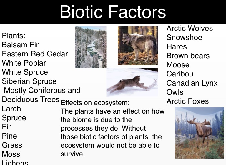 The plants have an effect on how the biome is due to the processes they do. Without those biotic factors of plants, the ecosystem would not be able to survive.