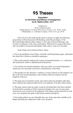 Martin Luther was a priest that thought the sale of indulgences was not something that they should do so instead of fighting with them he decided to make ninety-five theses against why they should not sell indulgences. In result the pope excommunicated luther from the church and he started his own teaching with the protestants now known as Lutherans.