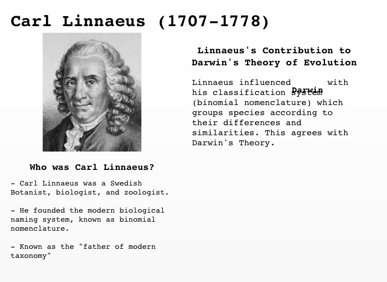 Linnaeus's Contribution to Darwin's Theory of Evolution