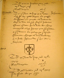 Pictured is a letter from Charles to Joan showing her coat of arms.