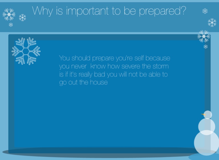 You should prepare you're self because you never know how severe the storm is if it's really bad you will not be able to go out the house