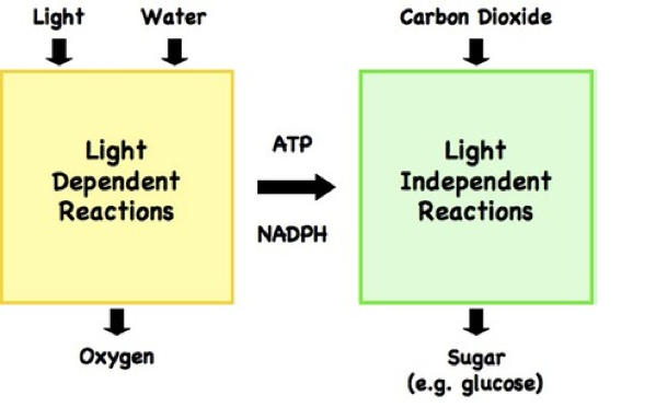 Light independent is when photosynthesis uses ATP and NADPH and carbon dioxide to make high energy sugars.