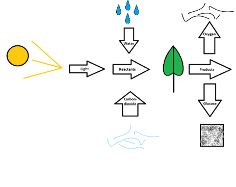 Photosynthesis uses light energy to change after and carbon dioxide (reactants) into sugars and oxygen (products)