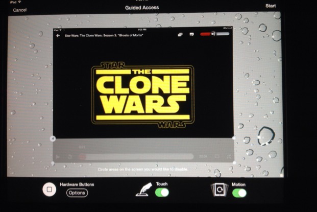 This feature locks users into a single app. Also allows parent to limit access to buttons.