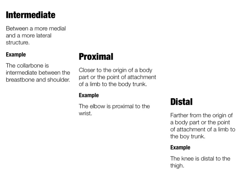Farther from the origin of a body part or the point of attachment of a limb to the boy trunk.