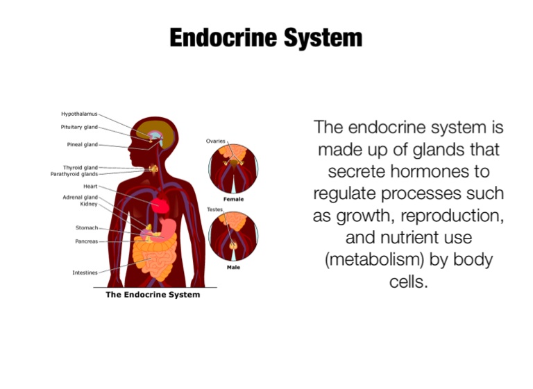 The endocrine system is made up of glands that secrete hormones to regulate processes such as growth, reproduction, and nutrient use (metabolism) by body cells.