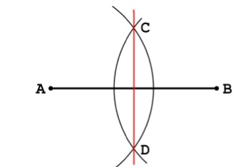 La mediatriz es una recta que divide a un segmento en dos partes iguales formando con él cuatro ángulos de 90 grados